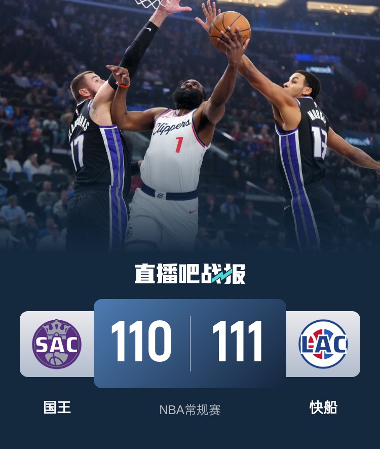 小卡17分&压哨绝杀 哈登29+9+11 德罗赞31+10 快船加时胜国王