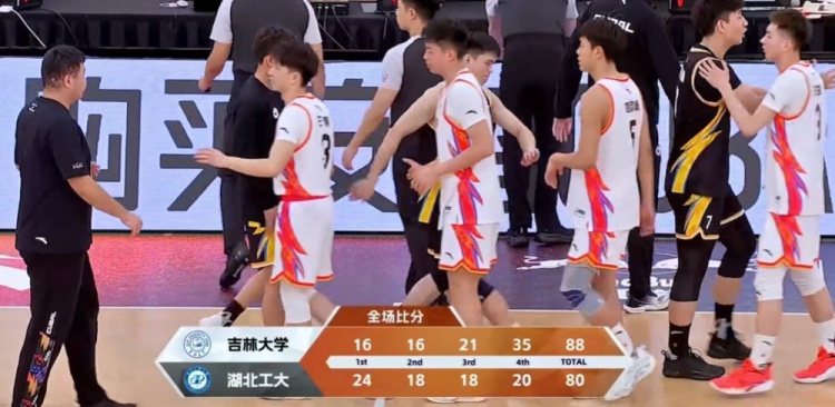 末节开局吉林大学进攻端手热前5次出手命中4球不断蚕食分差,刘滨畅和段世镭的两记三分带队打出13-6的攻势一举抹平比分,湖北工大期间出现三次失误又错失几次罚球状态大幅回落,刘思宇的进球帮助湖北工大破荒,但吉林大学越战越勇,段世镭和刘滨畅势不可挡,刘滨畅则成为取胜功臣,他先是底角命中三分为球队取得本场第一次领先,随后再续上两记三分,其中读秒阶段的三分直接奠定胜局。最终,吉林大学88-80逆转湖北工业大学拿下比赛。